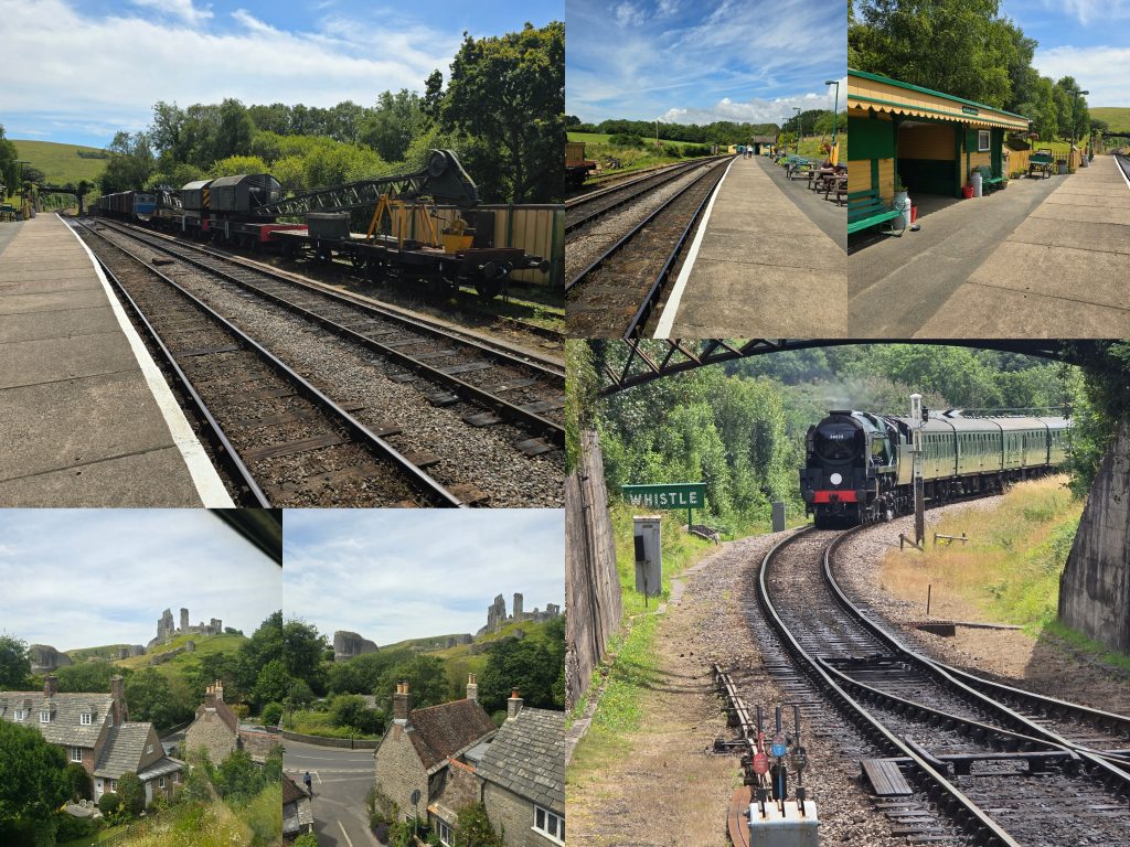 At Corfe Castle station. Clock-wise top left to bottom left:
